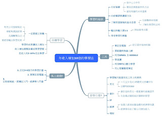 - 買好工具:NB、隨時可上網的無線網路、mp3 player(可以隨時聽英文或有聲書)、學影像閱讀法、學心智圖